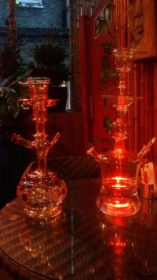 Evidently the position of Shisha water pipe tender (ḡalyāndār) dates from this time. Also at this time, reservoirs were made of glass, pottery, or a type of gourd. Because of the unsatisfactory quality of indigenous glass, glass reservoirs were sometimes imported from Venice.